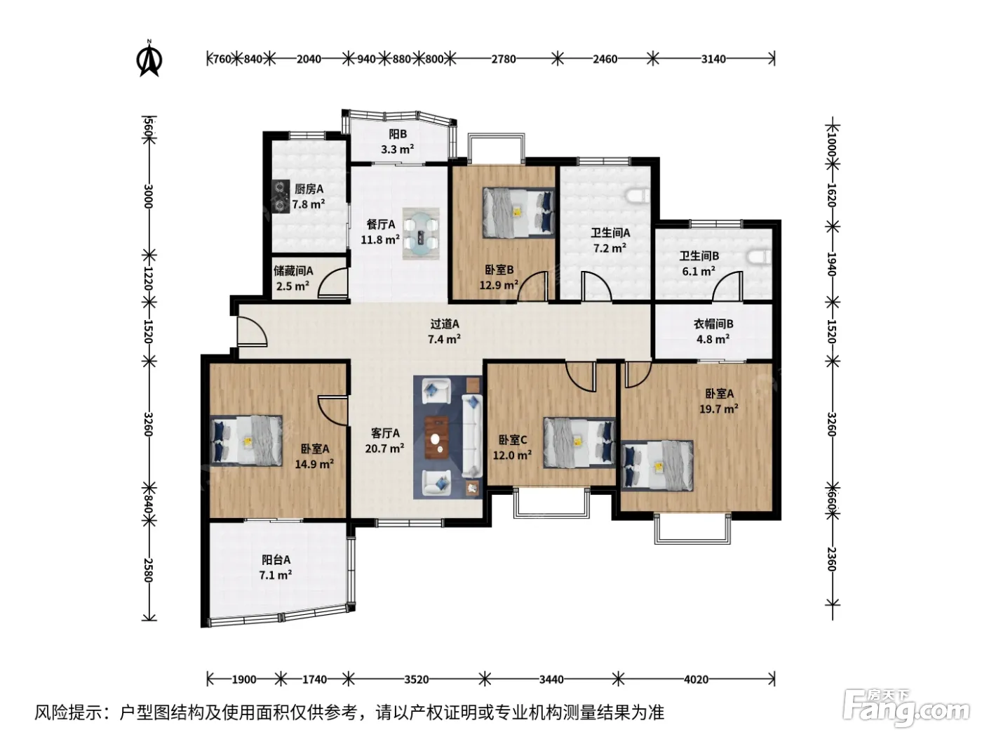 户型齐全,主打户型方正,明卫,明厨,独立衣帽间,客厅朝南,主卧朝南四居