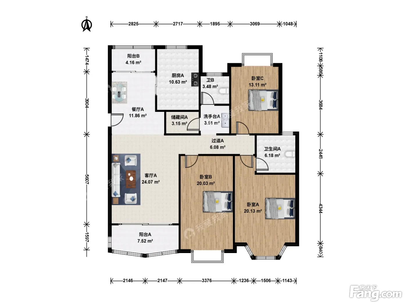 户型齐全,主打户型方正,明卫,明厨,双阳台三居