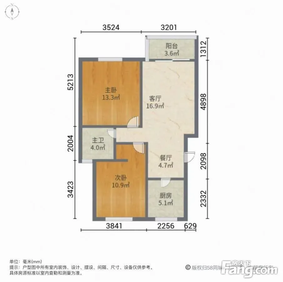 户型齐全,主打户型方正,明卫,明厨,客厅朝南,全明格局二居