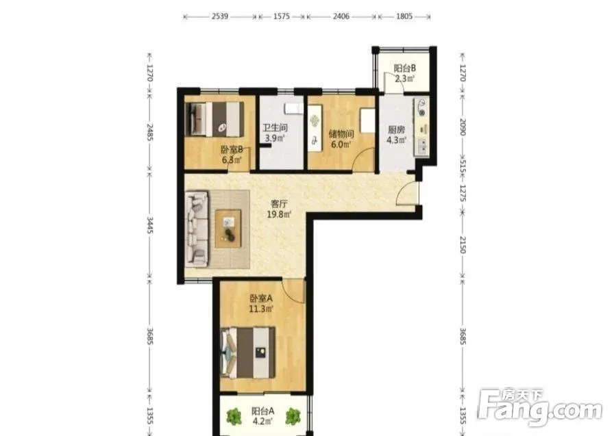 户型齐全,主打户型方正,明卫,明厨,客厅朝南二居