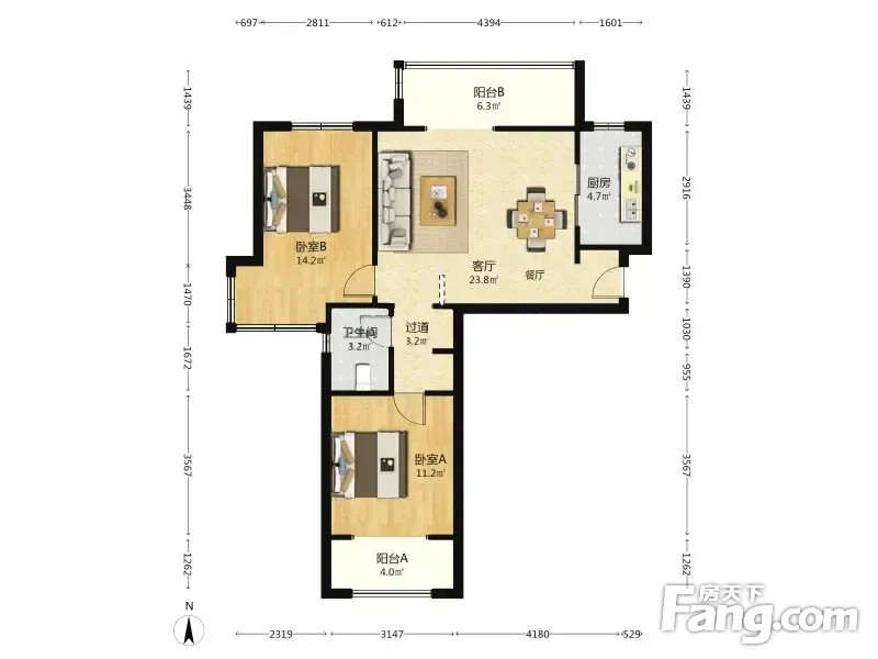 户型齐全,主打户型方正,明卫,明厨,双阳台,主卧朝南二居