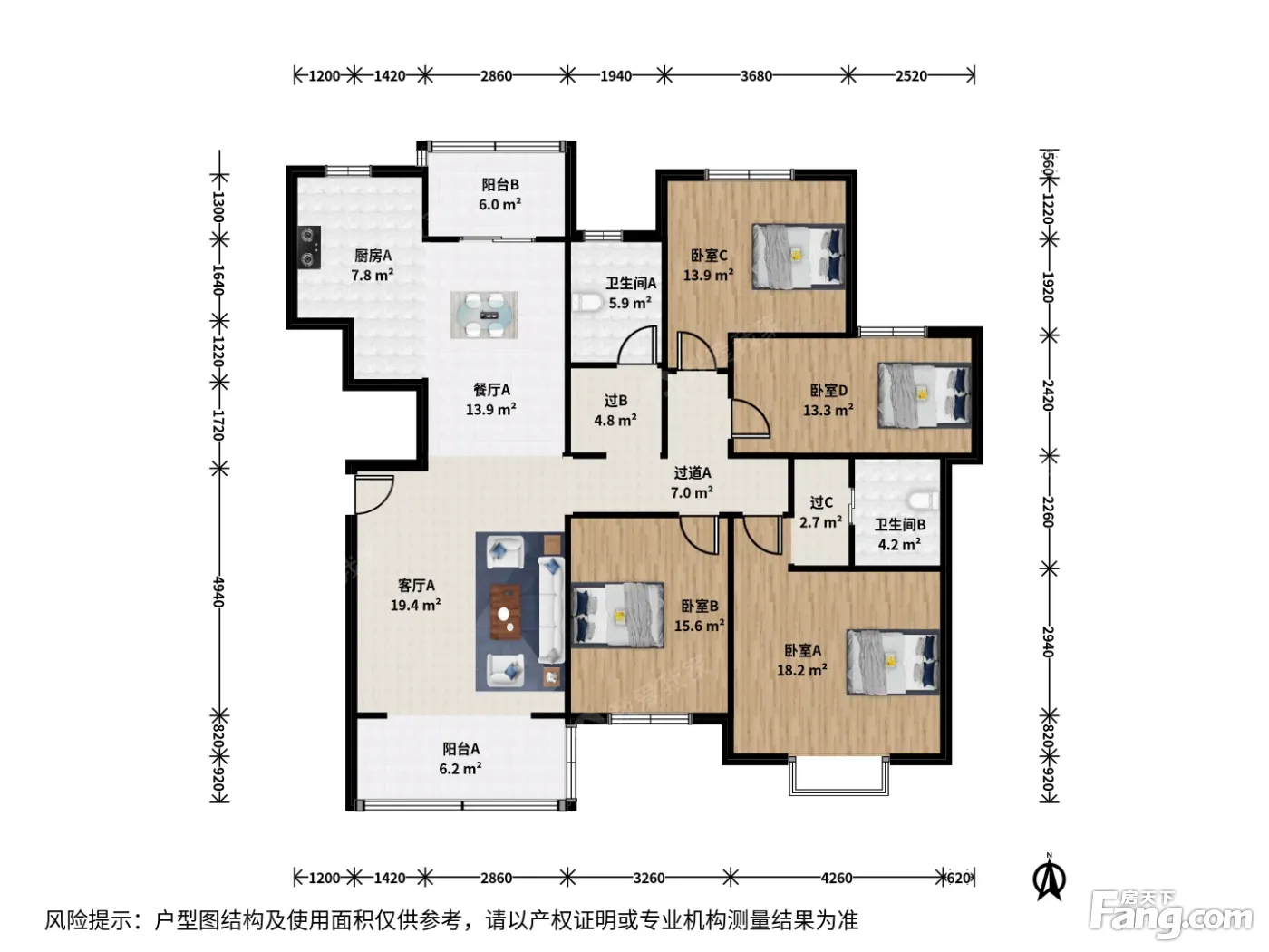 户型介绍:此房户型为4室2厅2卫,建筑面积为155.71平米,朝向为南北。