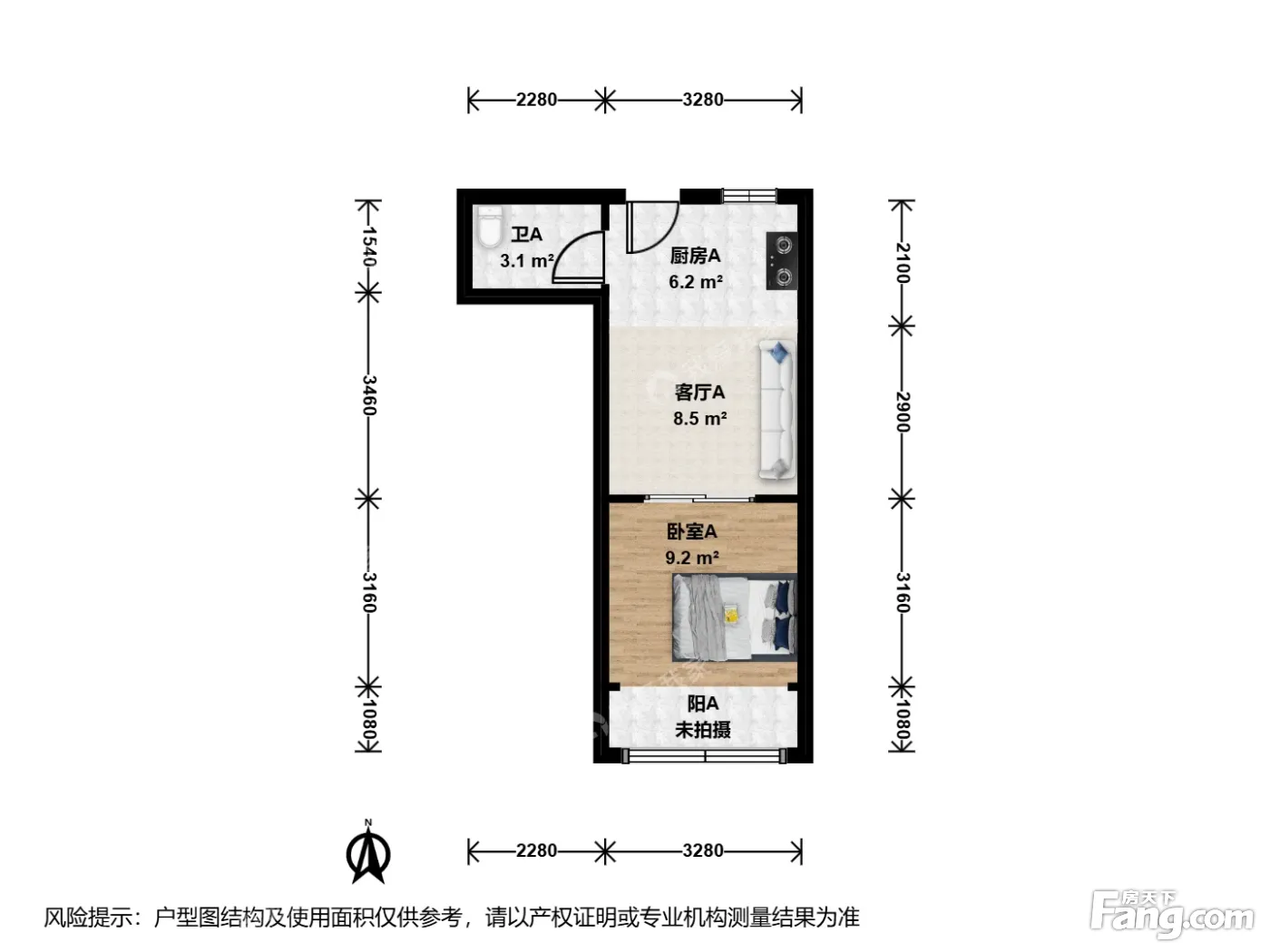户型齐全,主打户型方正,明卫,明厨,客厅朝南一居