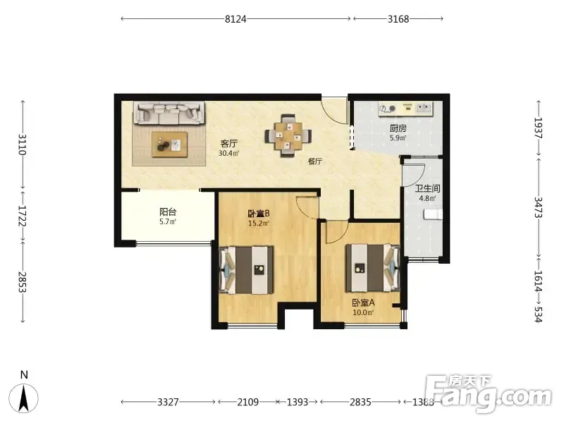 户型齐全,主打明卫,双阳台,双卧朝南,主卧朝南二居