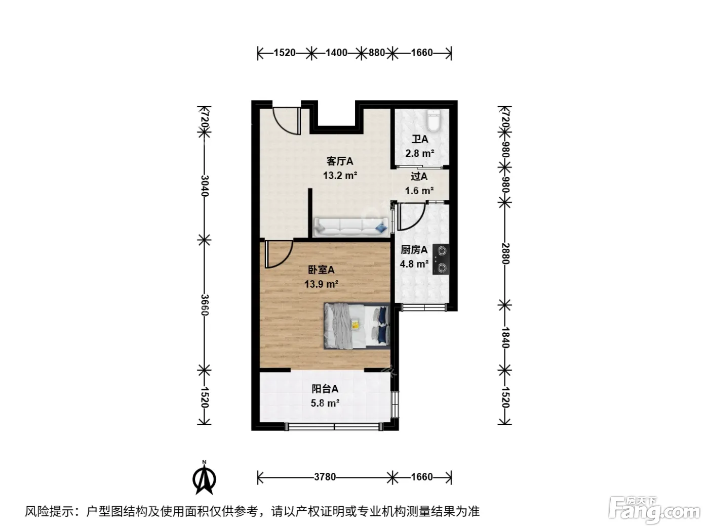 户型介绍:此房户型为1室1厅1卫,建筑面积为54.73平米,朝向为南。