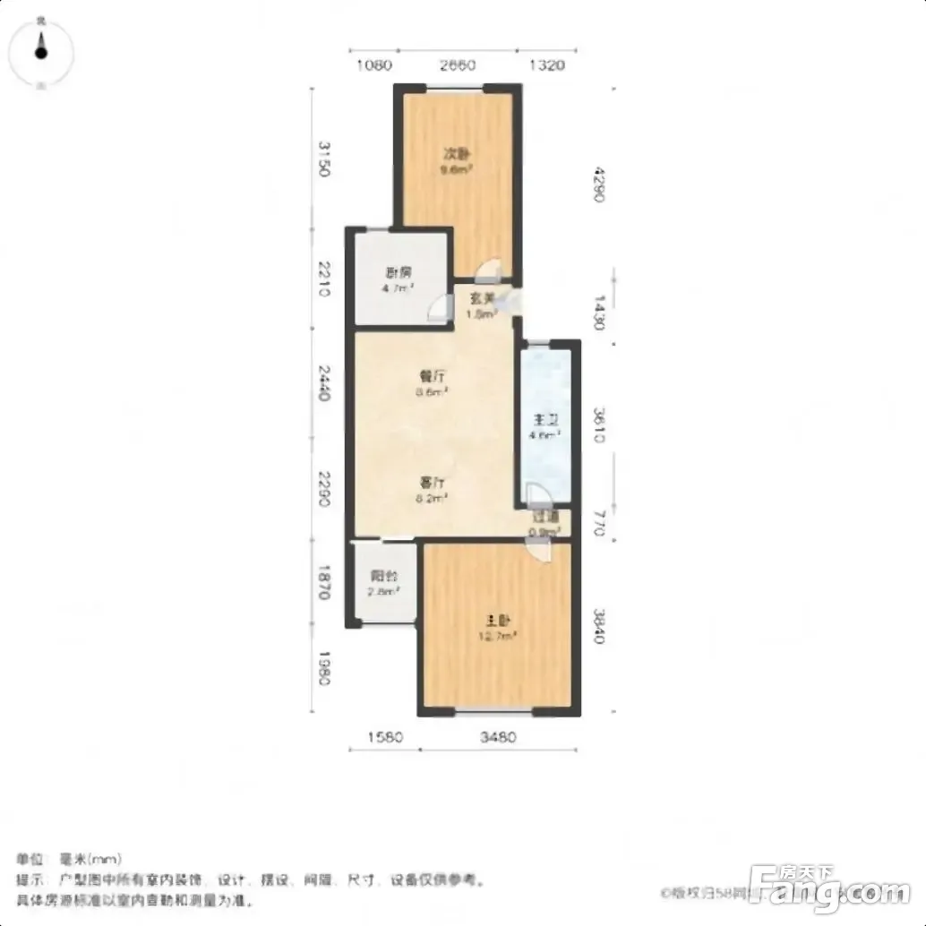 户型齐全,主打明厨,明卫,客厅朝南,全明格局二居