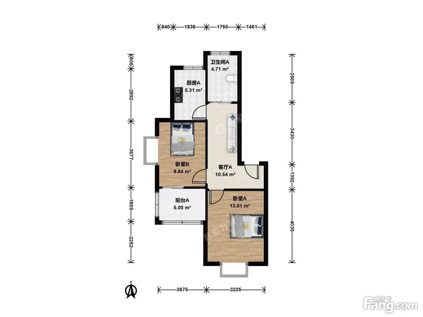 户型齐全,主打户型方正,明卫,明厨,主卧朝南二居