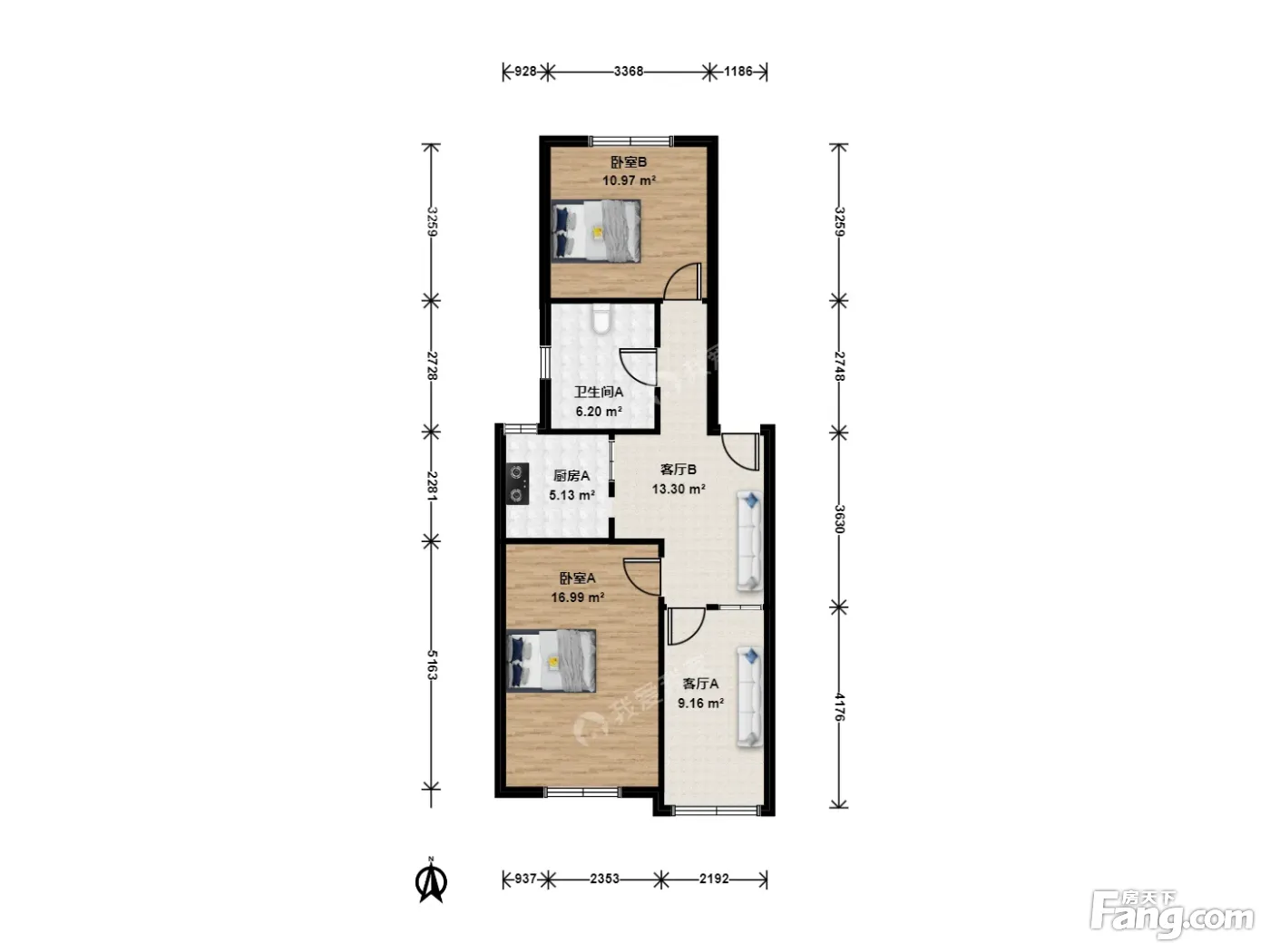 户型介绍:此房户型为2室1厅1卫,建筑面积为69.49平米,朝向为南。南北通卧室 厅朝南,全明户型