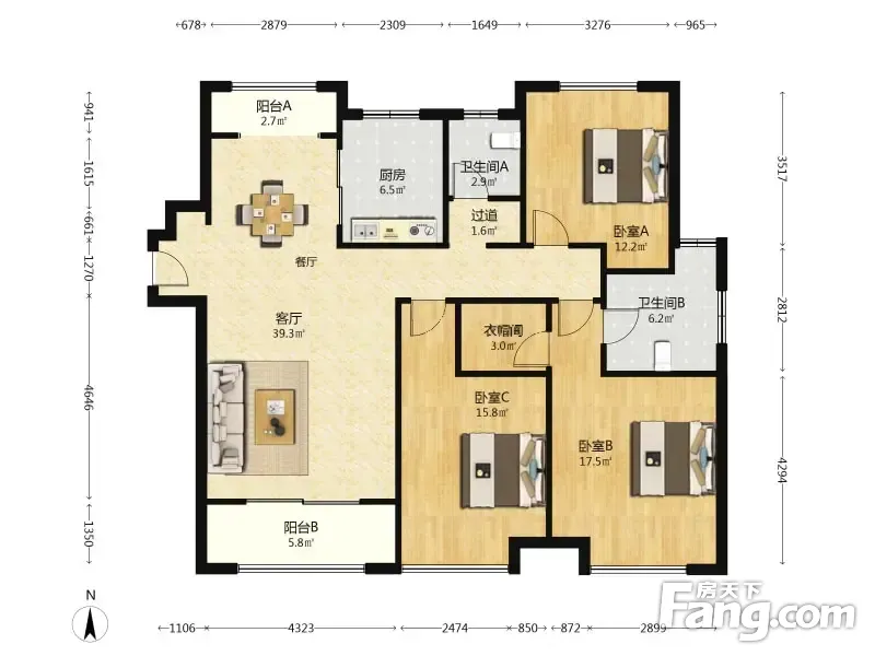 户型齐全,主打全明格局,户型方正,大面宽阳台四居