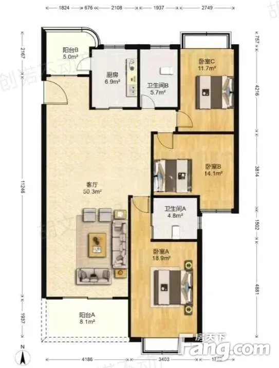 华丽家族花园 3室2厅 南