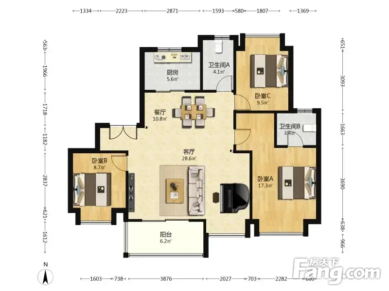 户型齐全,主打户型方正,明卫,明厨,客厅朝南,全明格局,主卧朝南二居