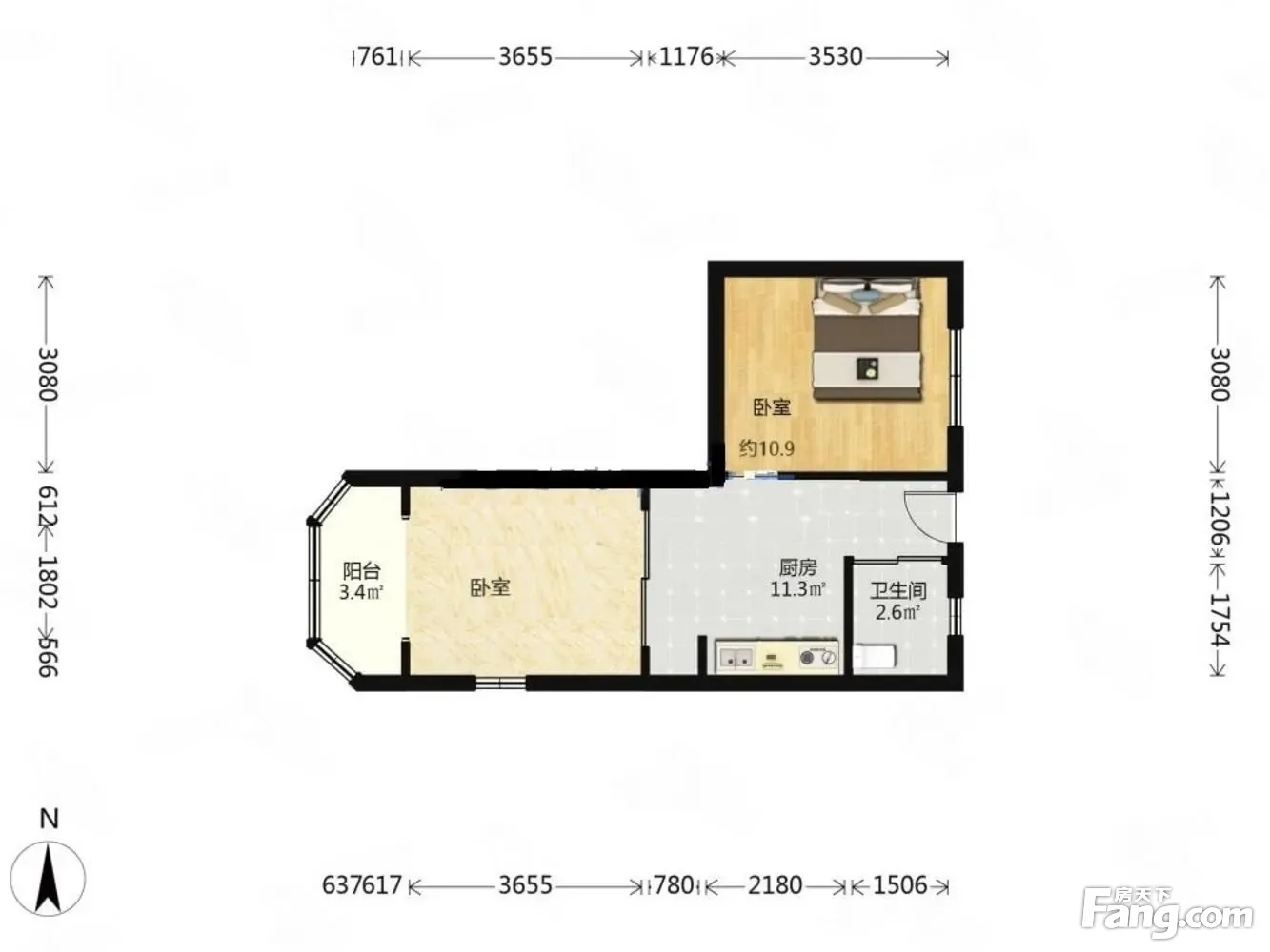 户型齐全,主打明卫,明厨,客厅朝南,全明格局二居