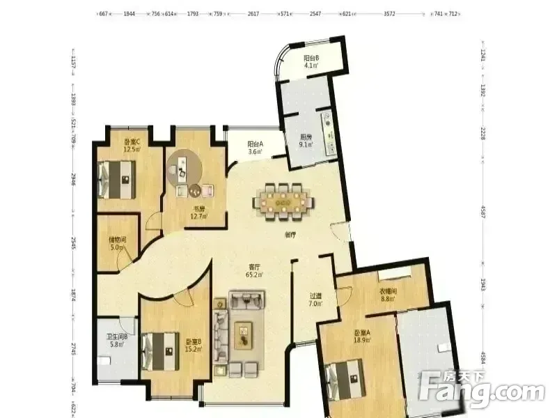 房屋拥有相对宽松的尺寸,布局通透,动静分离,设计豪华