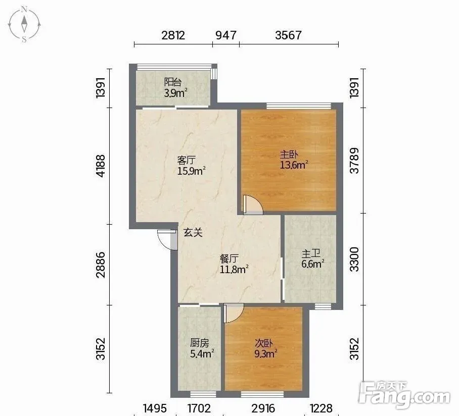 户型齐全,主打户型方正,明卫,明厨,主卧朝南二居