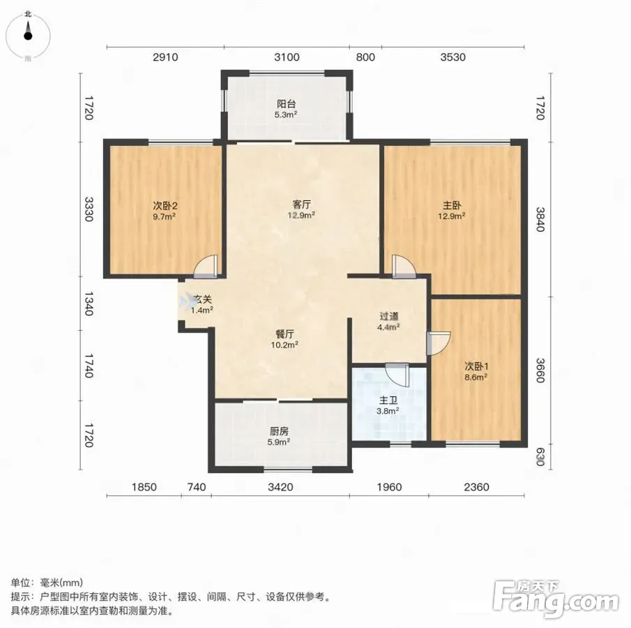 户型齐全,主打南北通透,客厅朝南,卧室朝南三居