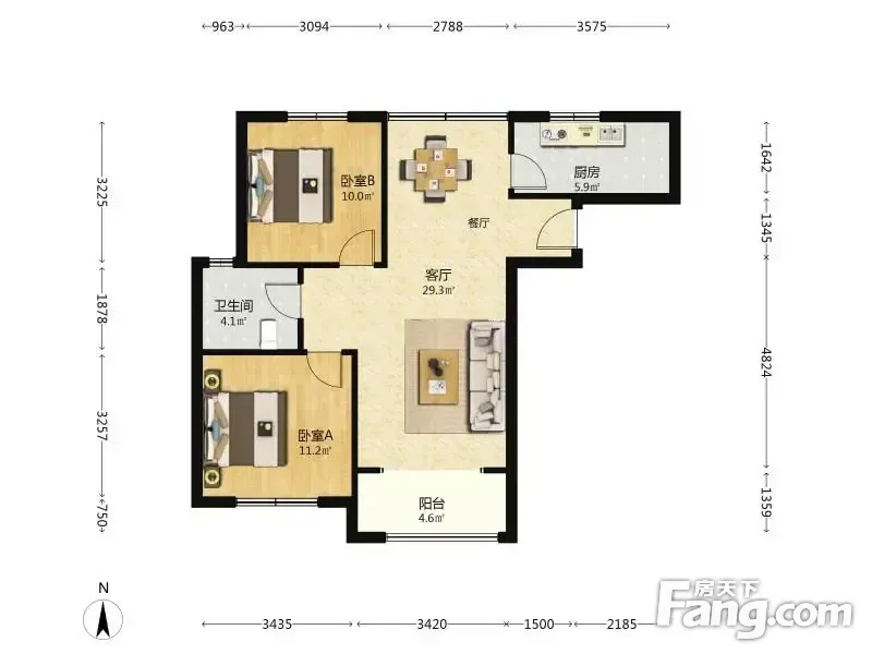 户型齐全,主打明厨,明卫,客厅朝南,全明格局,双卧朝南二居