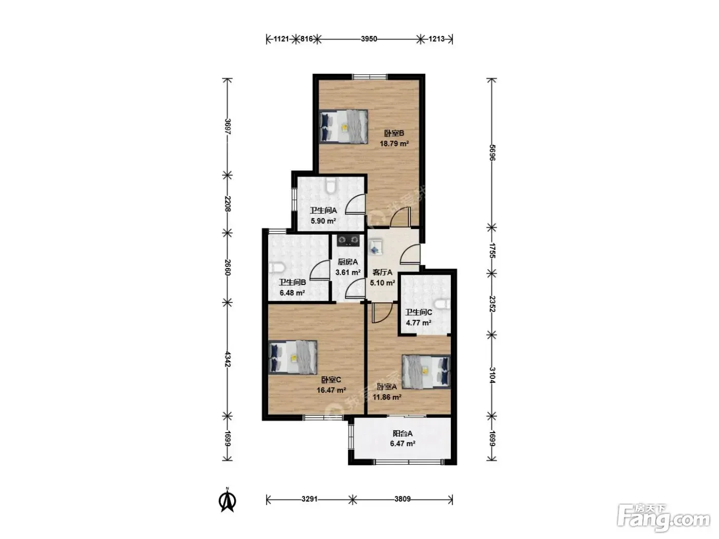 户型介绍:此房户型为3室1厅3卫,建筑面积为86.26平米,朝向为南。南北通透户型好,阳光充足,原始两房一南一北,厨卫全名。