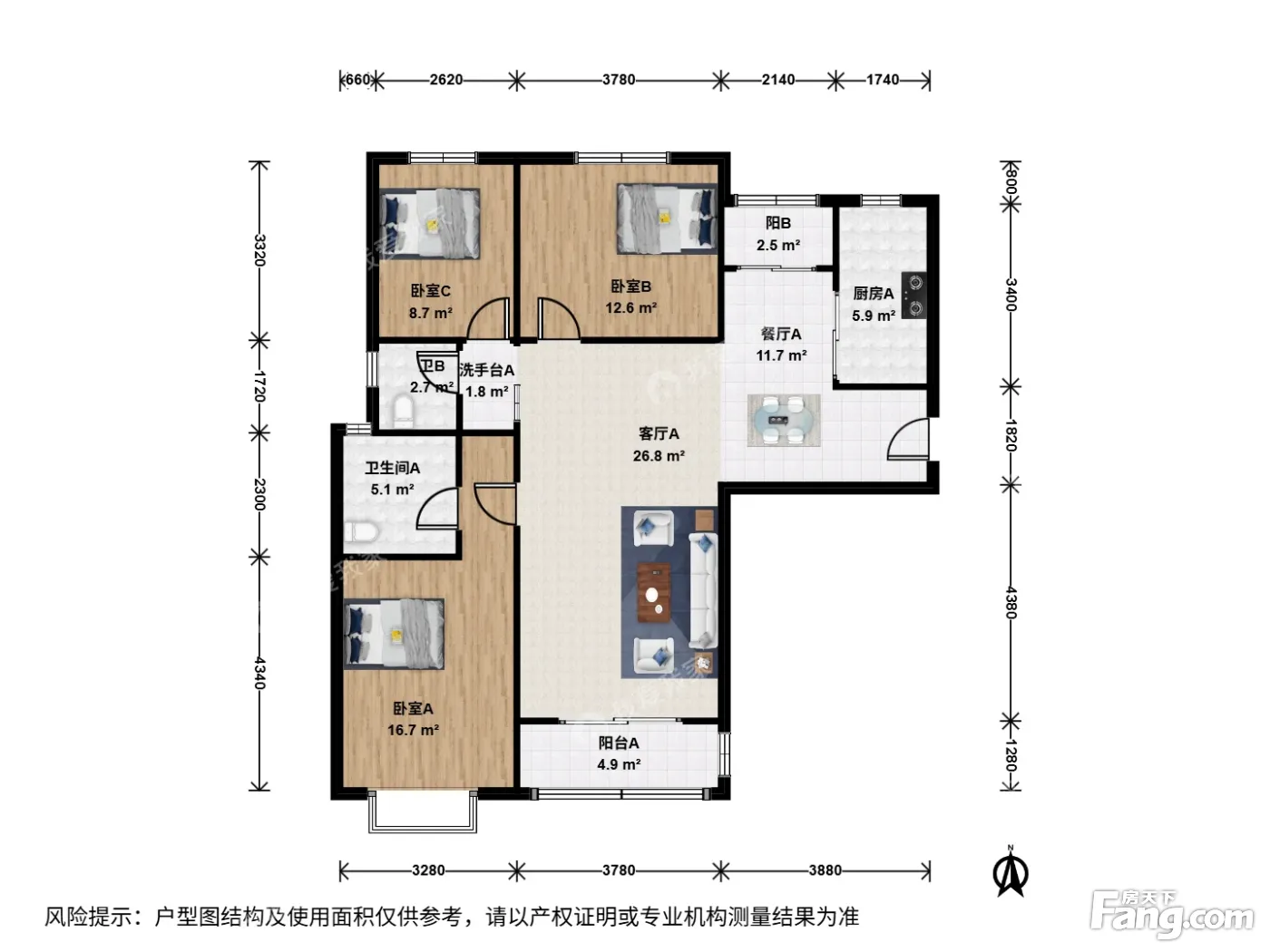 户型齐全,主打户型方正,明卫,明厨,双阳台,双卧朝南,主卧朝南,独立衣帽间,客厅朝南三居