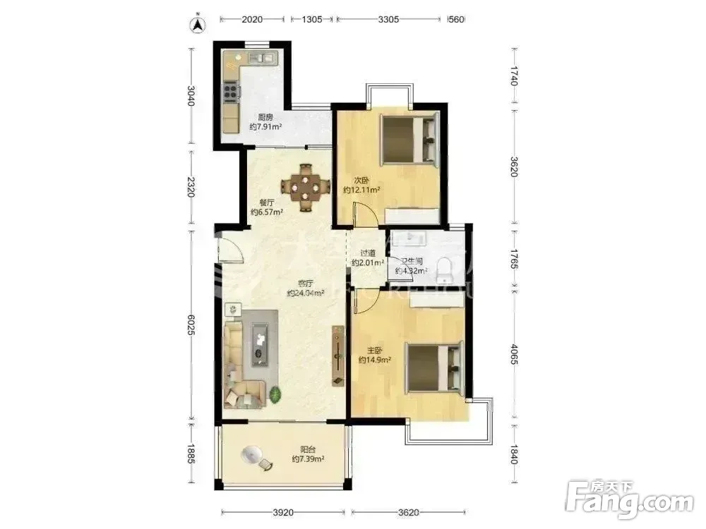 户型齐全,主打户型方正,明厨,主卧朝南二居