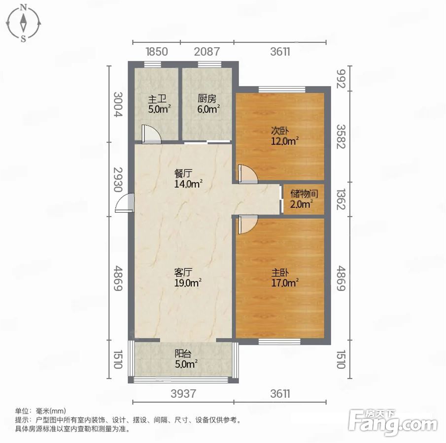 户型齐全,主打户型方正,明卫,明厨,客厅朝南,全明格局,主卧朝南二居