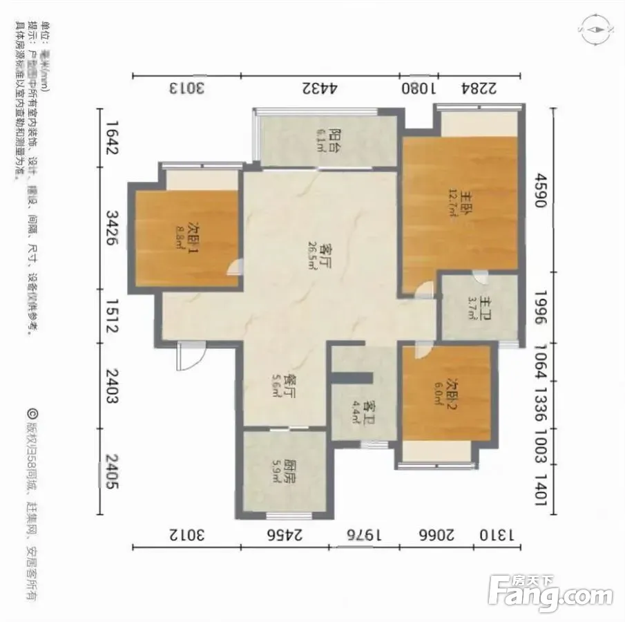 *获取完整户型报告,同时会有免费语音讲解服务