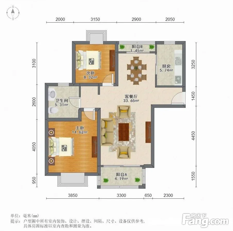 户型齐全,主打双阳台,主卧朝南二居
