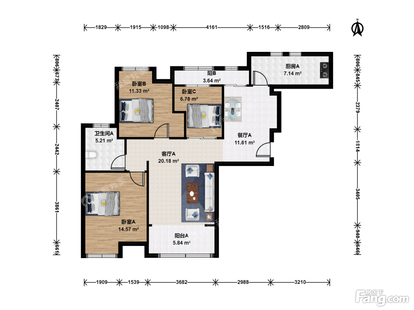 户型齐全,主打户型方正,主卧朝南三居