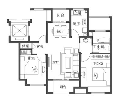 户型齐全,主打户型方正,明卫,独立衣帽间,明厨,客厅朝南,双阳台三居