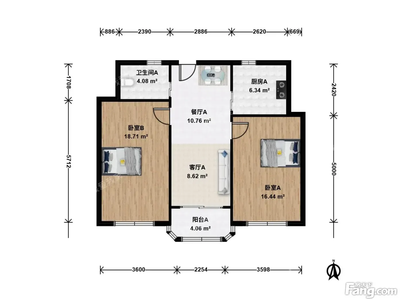 户型齐全,主打明厨,双卧朝南二居