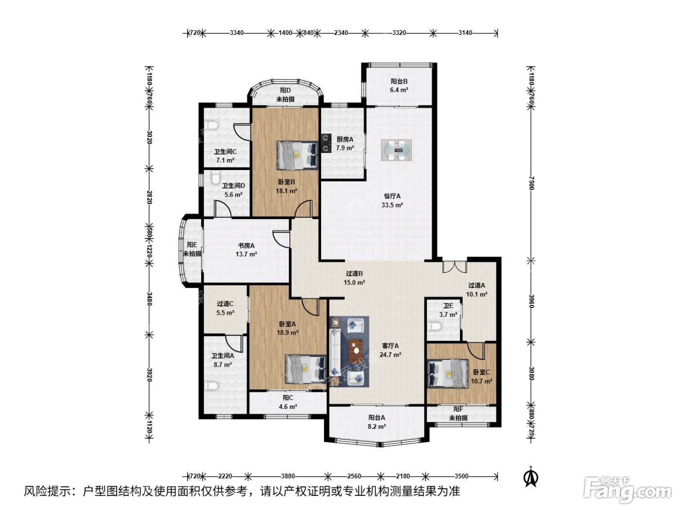 房屋拥有相对宽松的尺寸,布局通透,动静分离,设计豪华