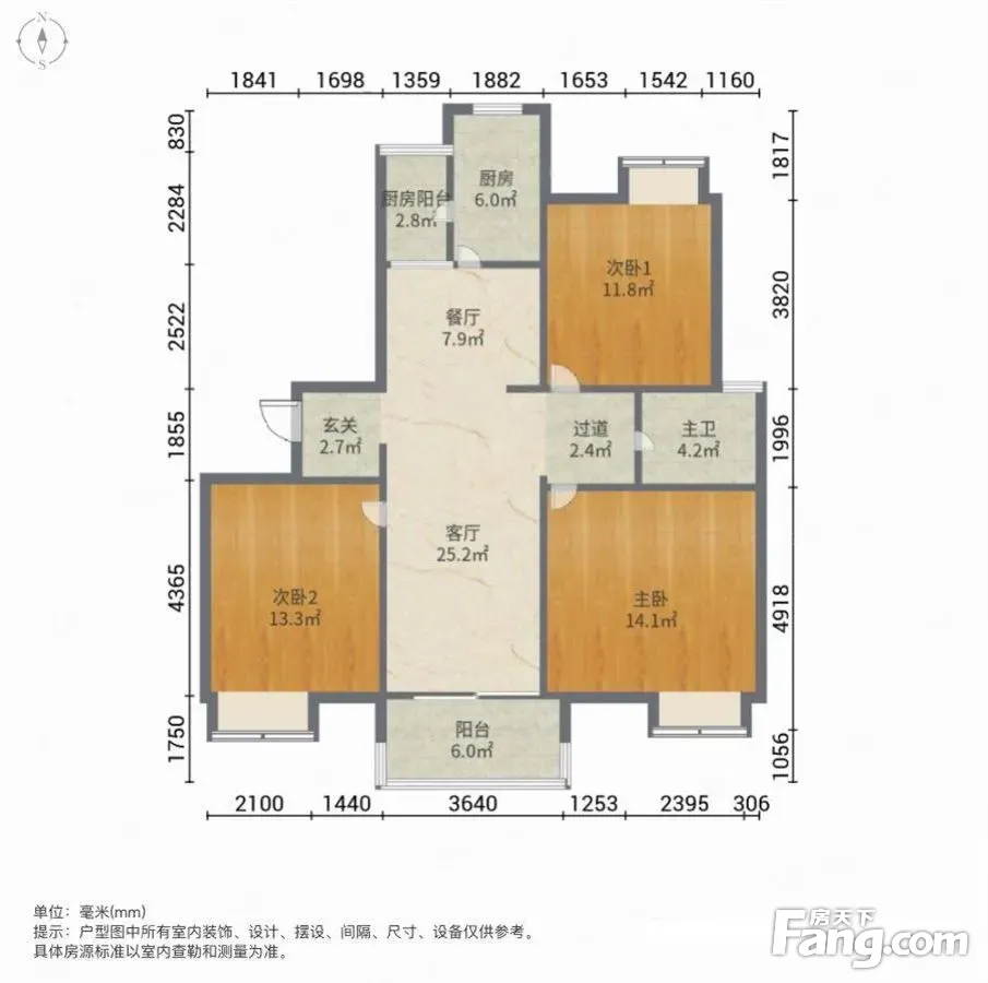 户型齐全,主打户型方正,明卫,明厨,双卧朝南,主卧朝南三居