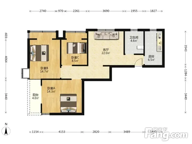 户型齐全,主打明厨,明卫,客厅朝南,全明格局,主卧朝南二居