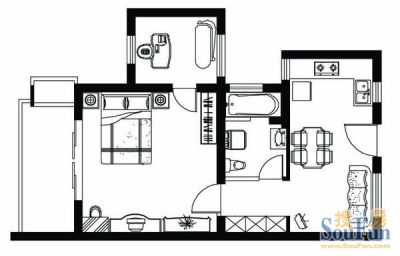 丽都城假日景苑 1室1厅 南