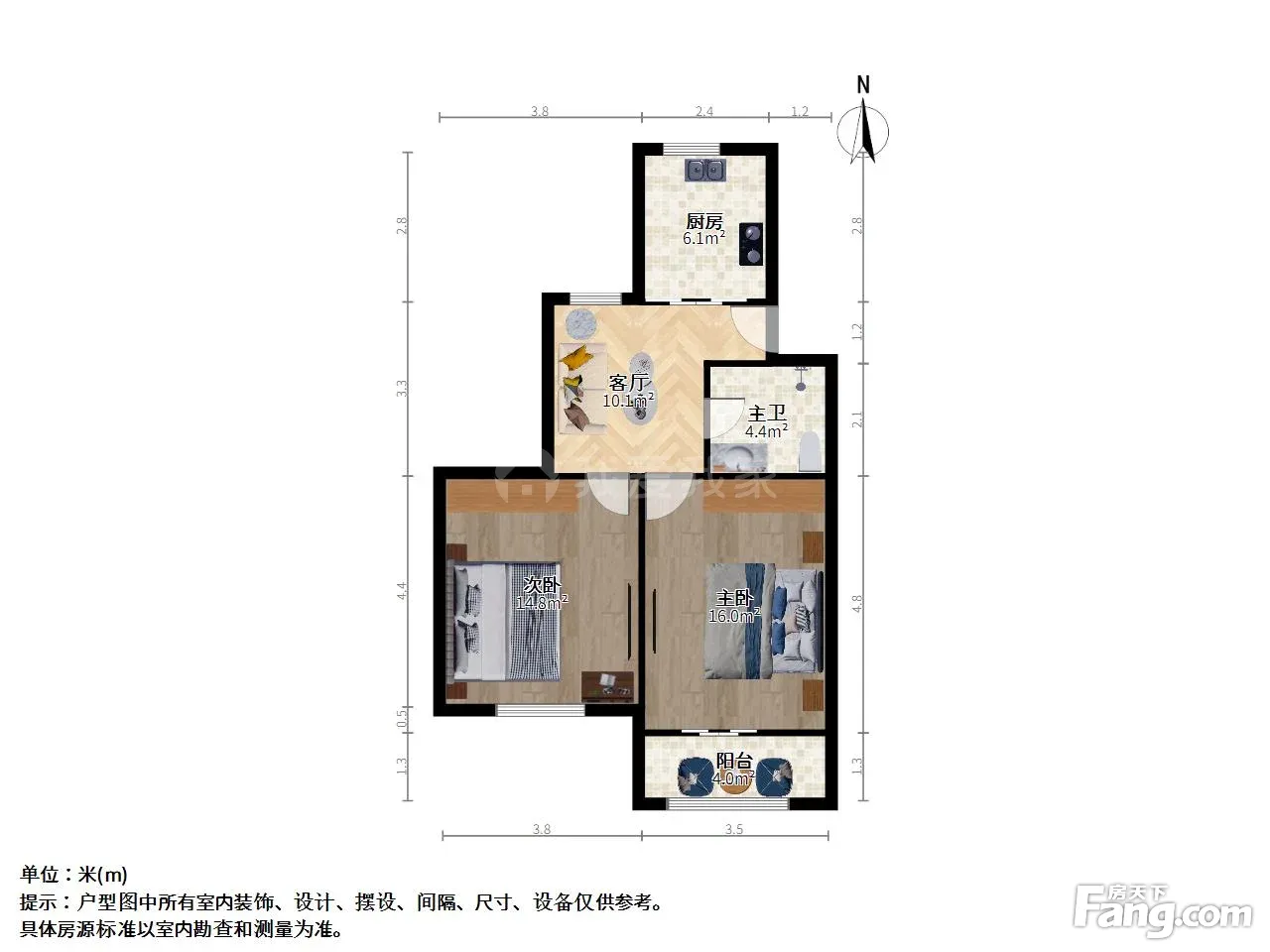 户型齐全,主打户型方正,明厨,客厅朝南,主卧朝南二居