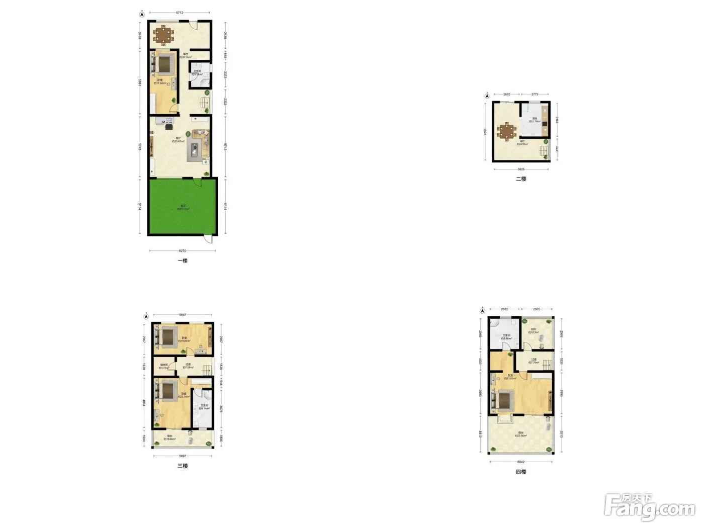 四层联排别墅,一楼带车库大客厅大花园,二楼功能区,三楼南北两房带露台,四楼一房带南北露台