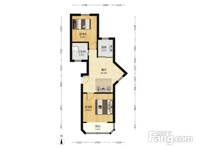 户型齐全,主打户型方正,明厨,主卧朝南二居