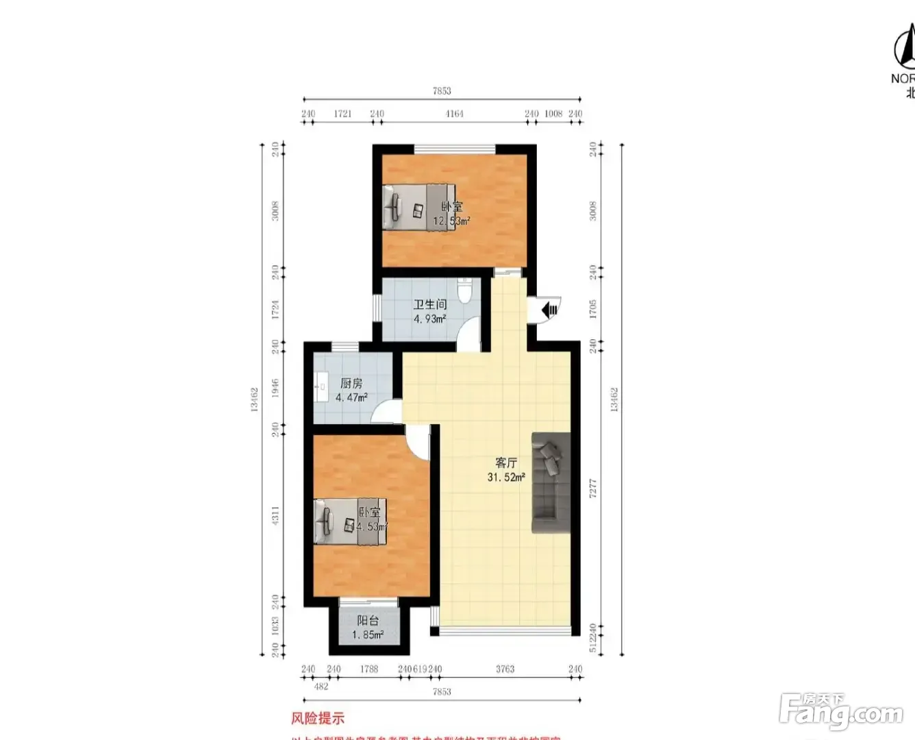户型齐全,主打明厨,明卫,客厅朝南,主卧朝南二居