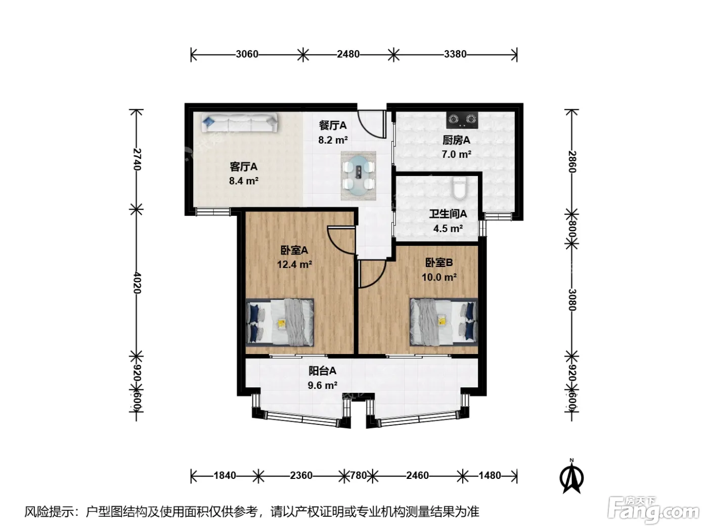 双南两房,双阳台,得房率77.81%,近地铁,双轨交