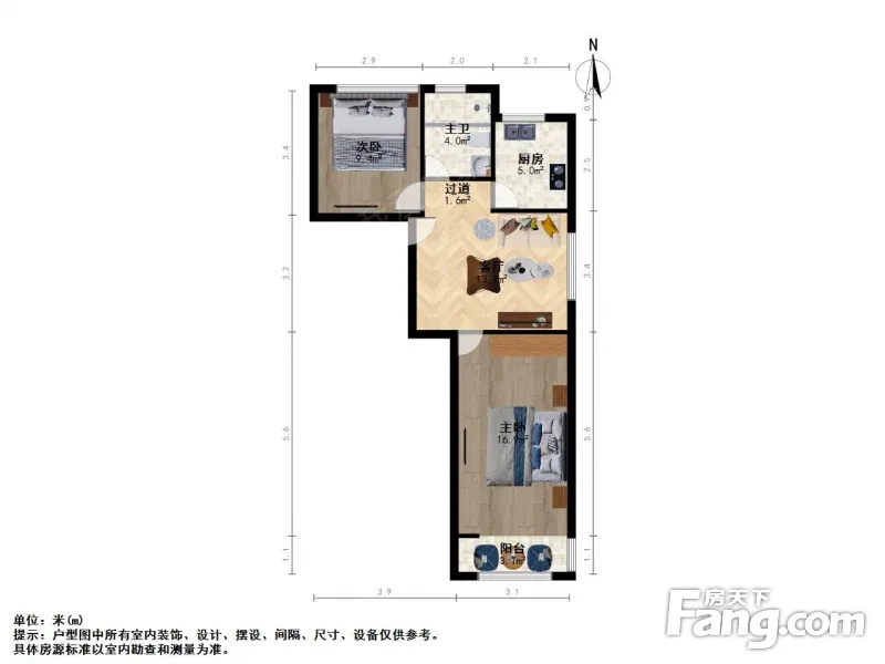 南北通透,朝南大房间18平,北房间12平,厨卫全明户型