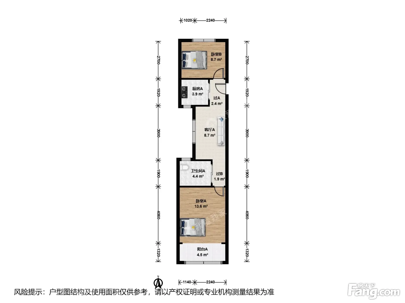 户型介绍:此房户型为2室1厅1卫,建筑面积为60.51平米,朝向为南北。
