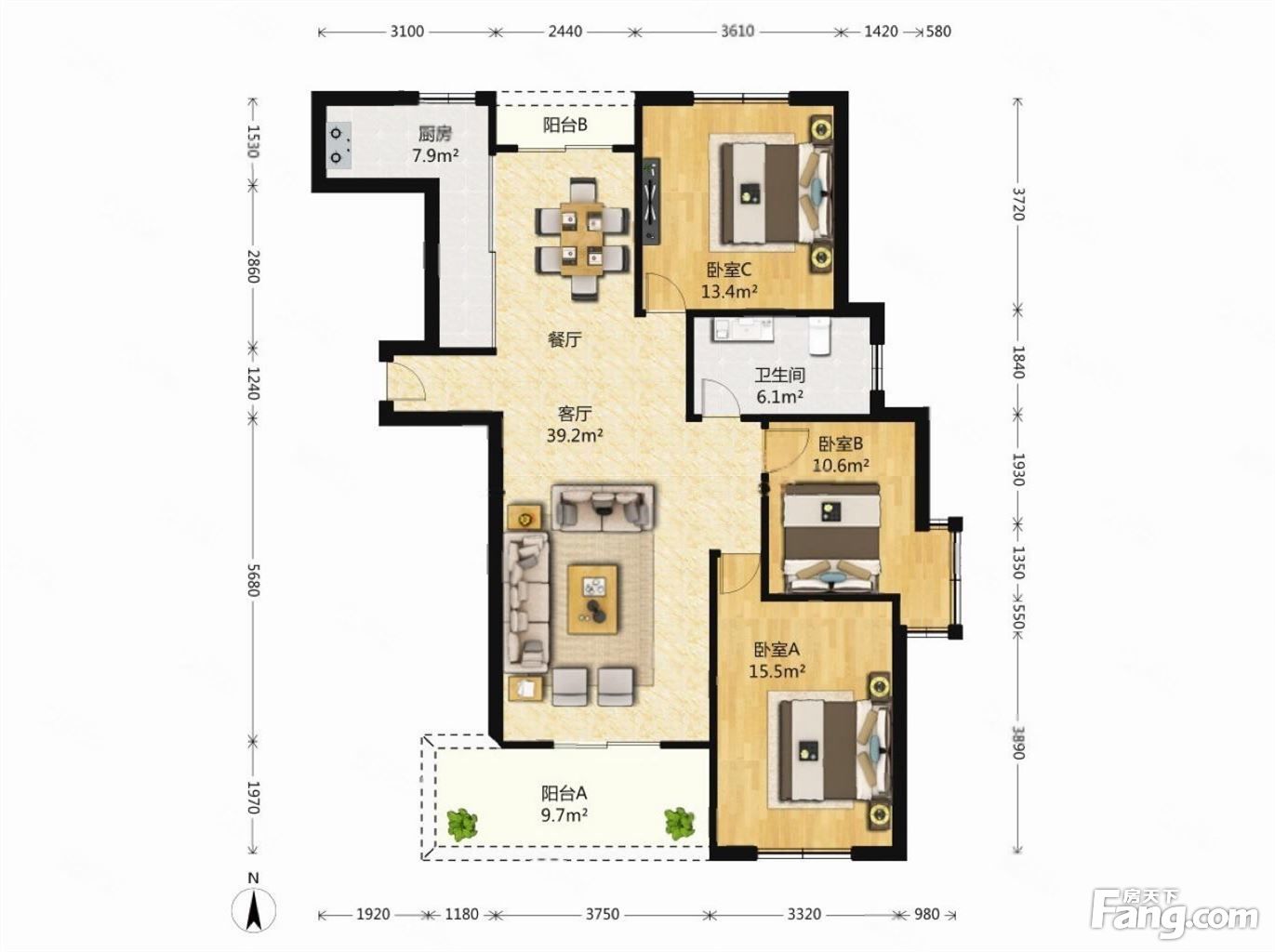 户型齐全,主打户型方正,明厨,明卫,双阳台,主卧朝南三居
