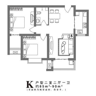 良城逸景2室2厅1卫南北朝向88.00万元/套出售