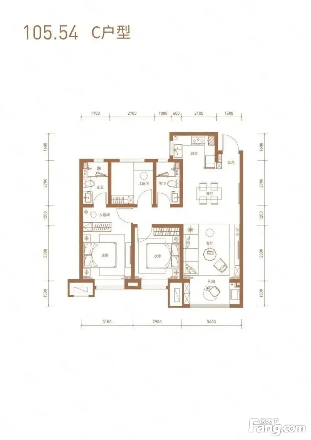 户型齐全,主打南北通透,全明格局,户型方正,动静分离,卧室朝南,主卧带卫,独立衣帽间三居