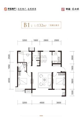 华远·昆仑赋户型主要有100平-132平的南北通透,户型方正的三居 、88平-88平的户型方正,动静分离的二居 。