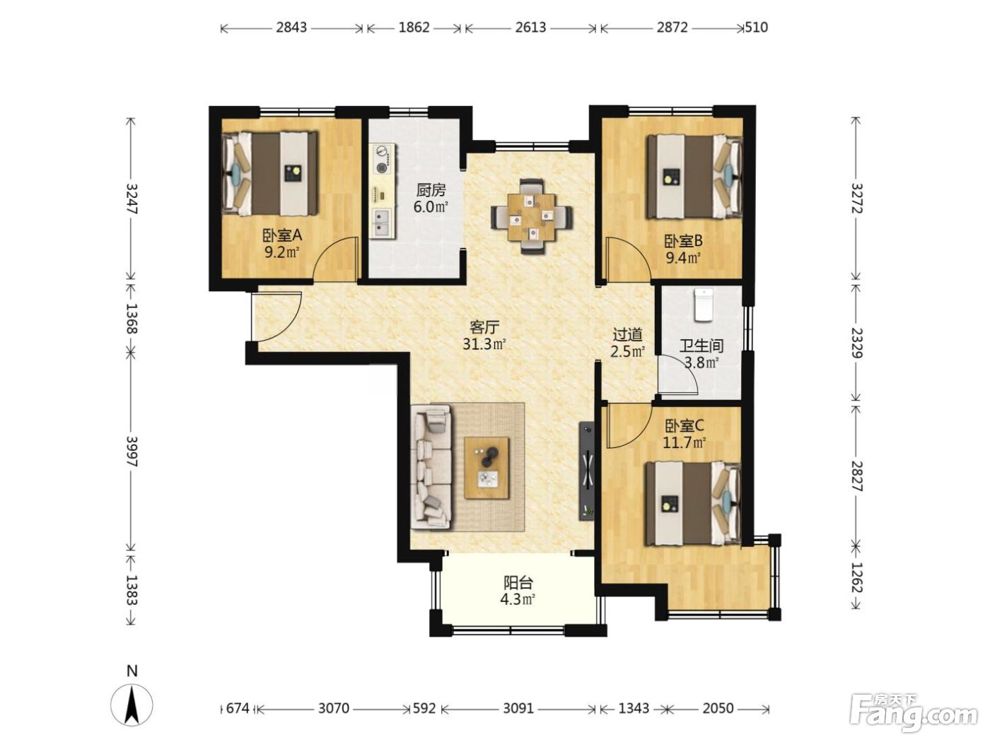 户型齐全,主打南北通透,卧室朝南三居