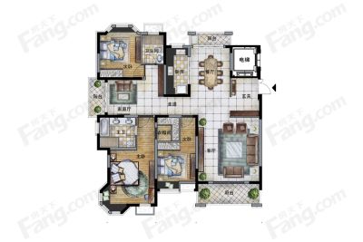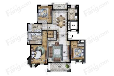 户型齐全,主打南北通透,全明格局,户型方正,主卧带卫,观景飘窗,干湿分离四居