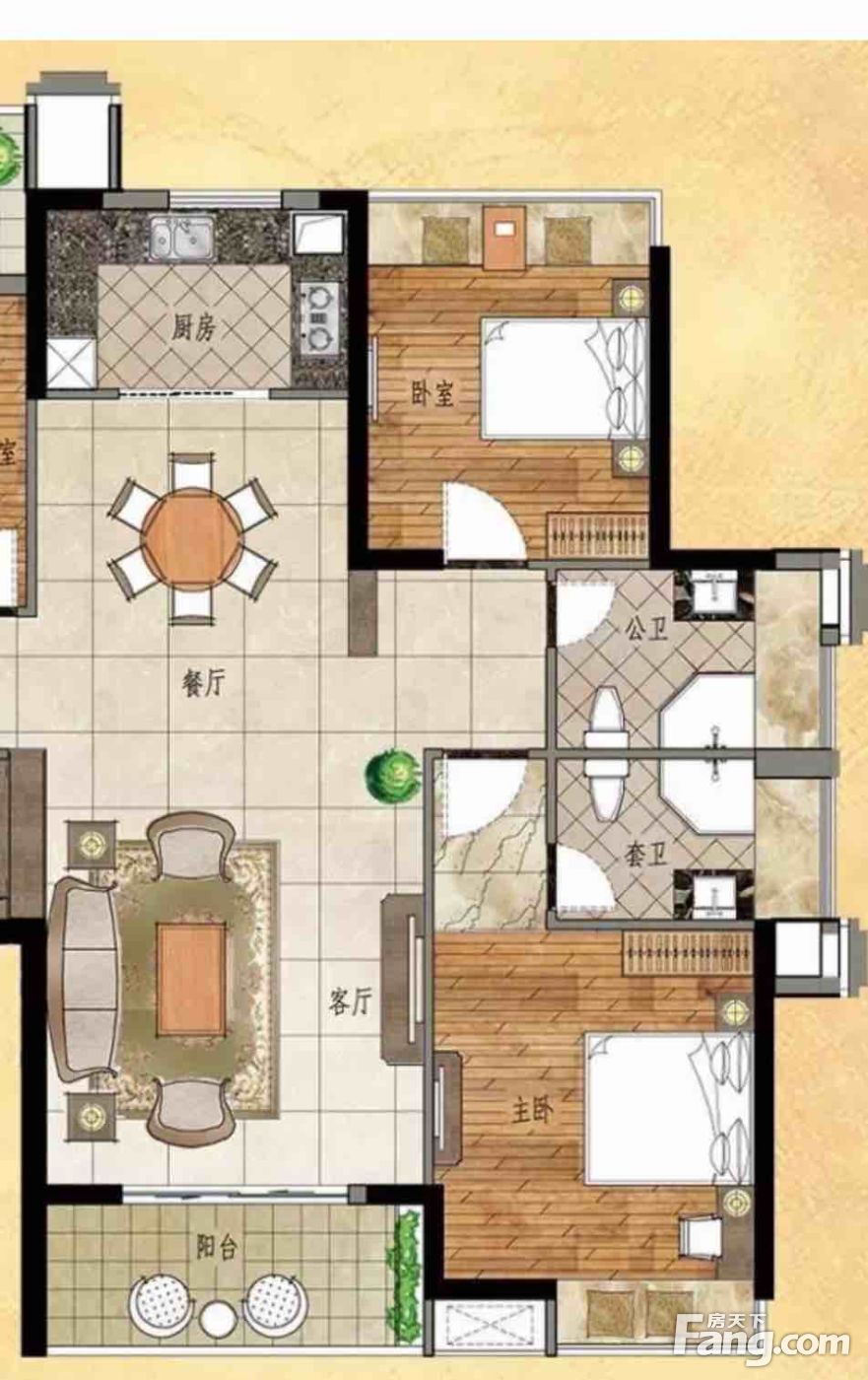 户型齐全,主打主卧带卫,户型方正,观景飘窗,双阳台,卧室带阳台三居