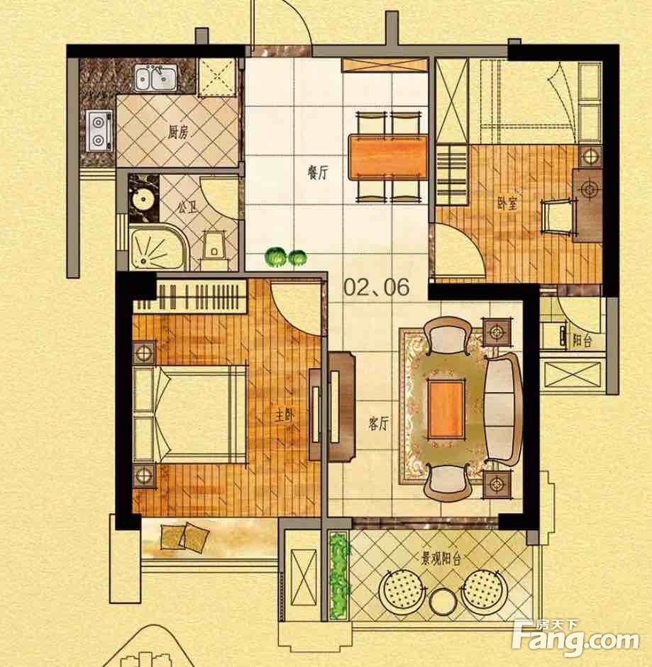 户型齐全,主打主卧带卫,户型方正,观景飘窗,双阳台,卧室带阳台三居