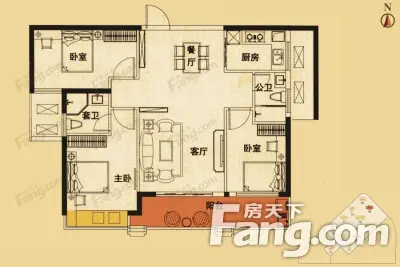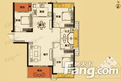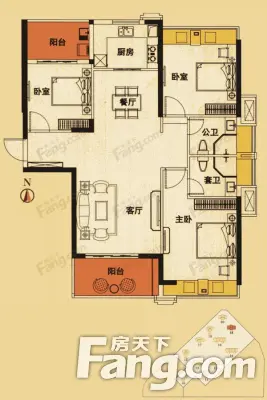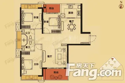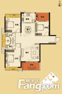 户型齐全,主打主卧带卫,户型方正,观景飘窗,双阳台,卧室带阳台三居