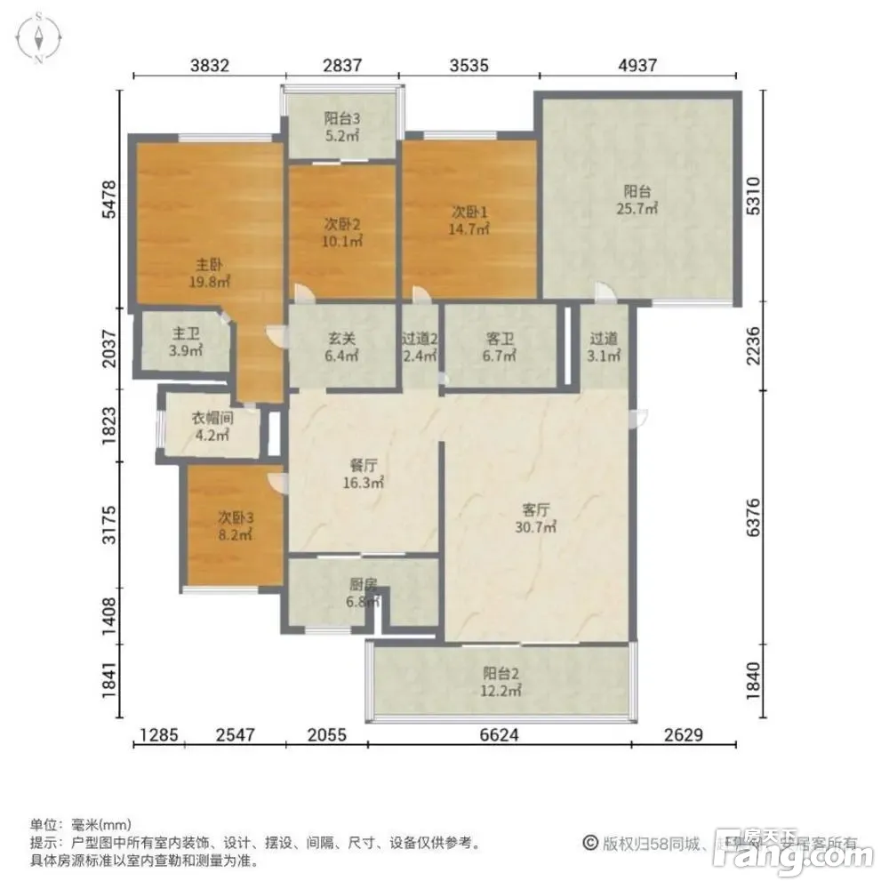 房屋户型方正,景观布局合理,设计实用,空间舒适,格局优越,采光通风良好